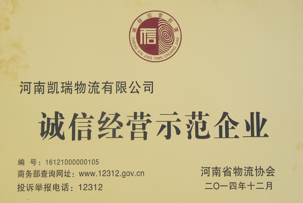 2014年榮獲誠(chéng)信示范企業(yè) |